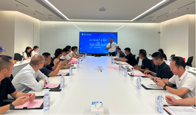 参观结束后,交流会进入主题分享环节。协会执行会长范丛明率先发表《AI+制造产业实践》主题演讲。他结合2025年“人工智能+”行动上升为国家战略的行业背景,指出当前制造业正从“点状突破”向“系统性变革”深度演进,AI技术已成为重塑制造业全价值链的核心驱动力。范会长强调,深圳作为人工智能产业高地,拥有丰富的技术资源与创新生态,协会将持续搭建政企对接、产学研融合的桥梁,推动AI技术与制造场景深度结合,助力企业破解转型痛点,实现高质量发展。
