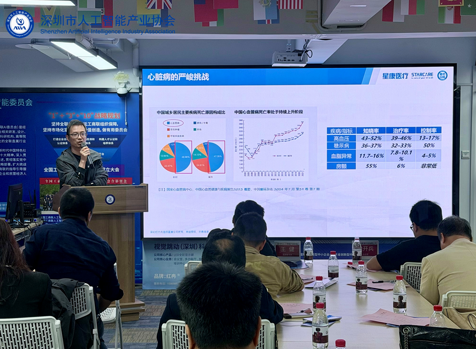 活动伊始,深圳市人工智能产业协会常务秘书长王健就《协会近期工作汇报及行业趋势解读》发表讲话。他指出,深圳市于2025年3月发布的《深圳市加快打造人工智能先锋城市行动计划(2025—2026年)》,明确提出将深圳打造为“医学人工智能创新发展先锋城市”的重要目标,致力于构建从算法研发到场景应用的全链条医疗AI产业生态。目前,全市已有近450项人工智能医疗产品在各级医疗机构实现落地,广泛应用于疾病筛查、健康管理、康复养老等多个领域,为深圳人工智能医疗产业的高质量发展提供了有力支撑。王健常务秘书长并表示协会希望通过举办此类活动,为会员企业搭建交流合作平台,共同推动形成“算法研发—场景落地”的全链条生态,助力企业在医疗AI等关键领域把握发展机遇。
