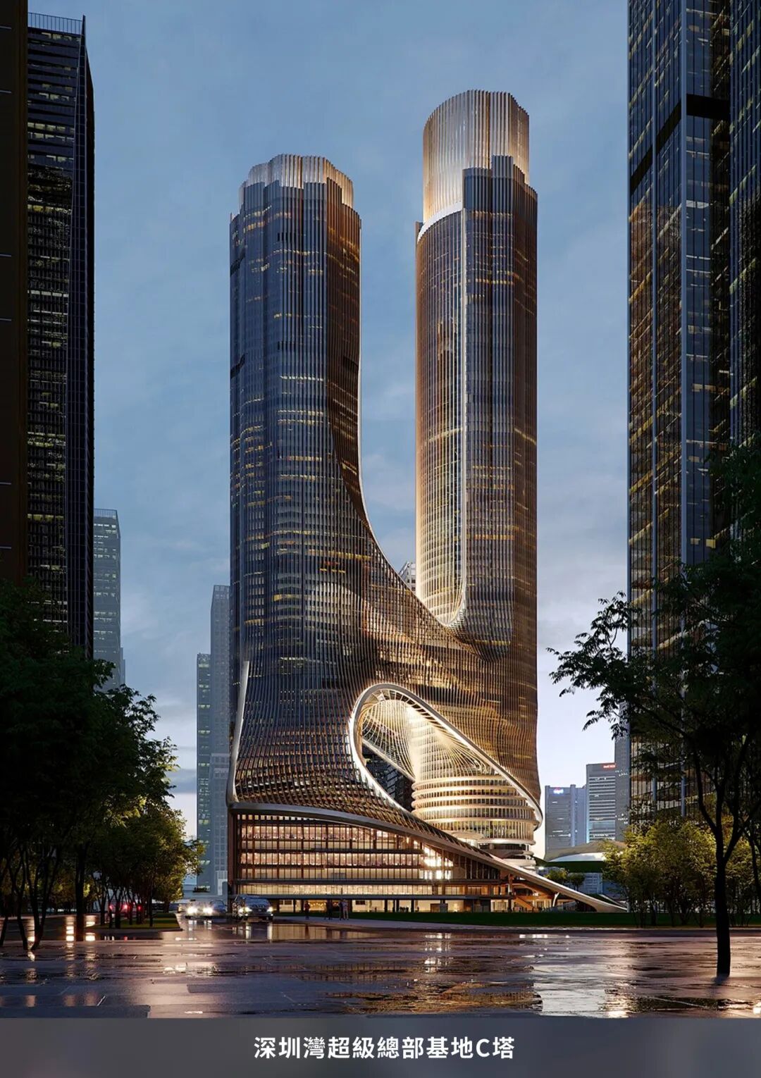 遠東智造以科技創新為筆,打造複雜曲面幕牆領域的標桿項目。作為全球首例自由雙曲面單元幕牆項目,香港中環美利道2號商業大廈的曲面單元佔比達60%,實現建築美學與工程技術的雙重突破;深圳歐加大廈以複雜曲面幕牆為核心技術特徵,整體曲面幕牆佔比達83%,塔樓實現100%雙曲幕牆全覆蓋的高比例配置,其曲面幕牆施工技術具有較高行業難度;而國內具有代表性的連廊雙子塔超高層建築——深圳灣超級總部基地C塔,融合褶皺式幕牆、雙曲幕牆等多元複雜工藝,其獨特的“扎哈式”流線造型,對幕牆生產精度與施工控制提出了極高要求。一系列標誌性工程的落地,直觀體現了遠東智造在複雜曲面幕牆智能製造領域的技術實力與行業地位。