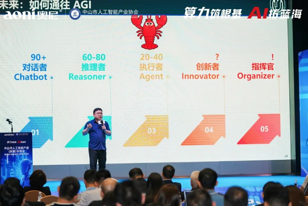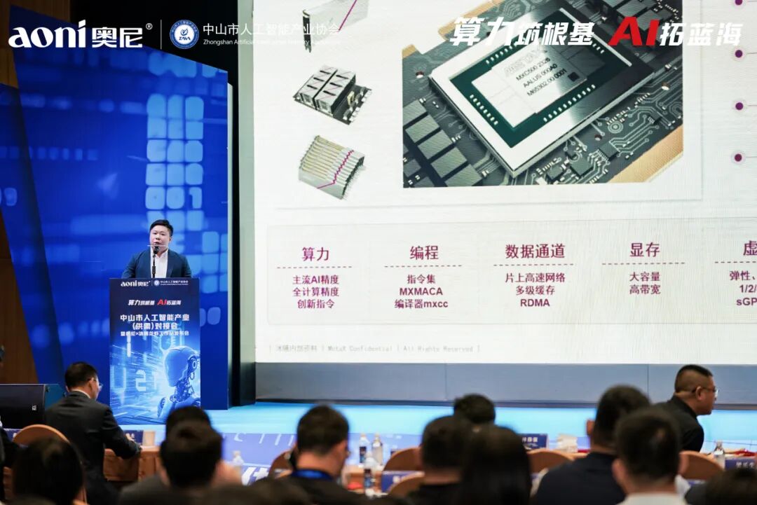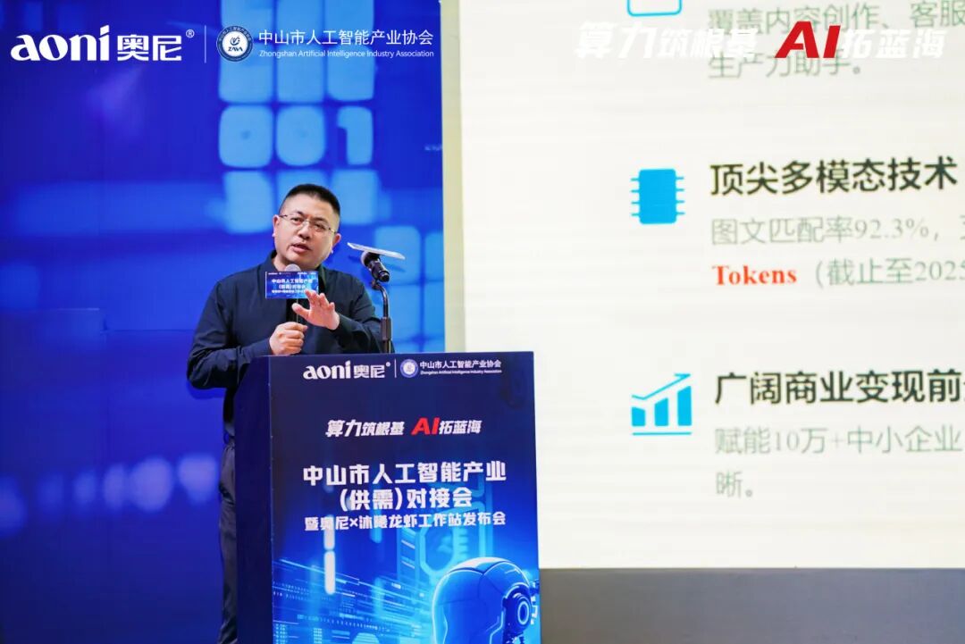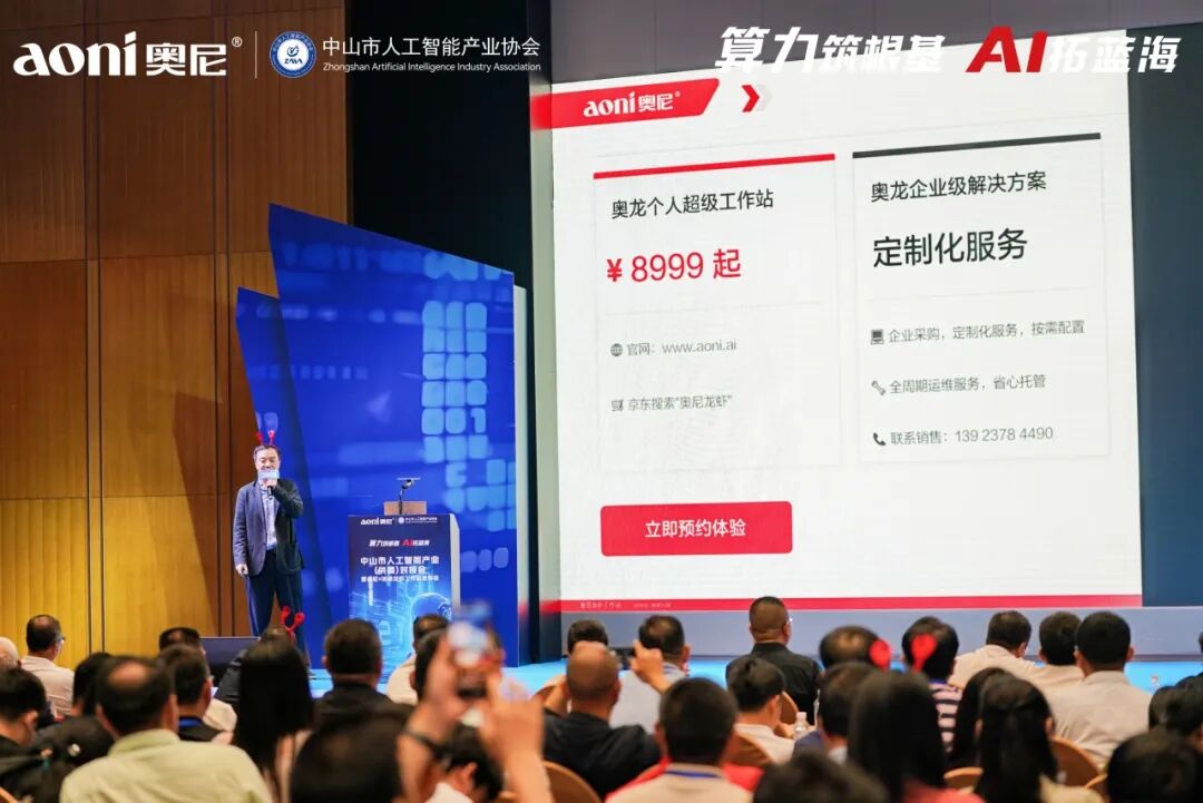 引 言 2026年3月26日,中山市人工智能产业(供需)对接会暨奥尼·沐曦龙虾工作站发布会在中山圆满举办。本次活动由中山市工业和信息化局、中山市小榄镇人民政府、中山市东区工业科技和商务局指导,中山市人工智能产业协会主办,以「算力筑基,AI聚势」为核心主题,共吸引政企学界、产业同仁390 余人参会,共话 AI 产业新机遇、共探算力发展新未来。本次活动核心亮点是奥尼龙虾超级工作站正式发布!该款产品由中山生产制造,具备多元应用场景,实现从个人开发者到大型企业的全场景覆盖,展现国产算力硬件创新突破。 PART.1 政企协同 政策赋能产业提速 活动现场,中山市工业和信息化局局长林伟强作开场致辞,充分肯定中山人工智能产业发展成果,表示将持续完善产业生态、强化政策支撑,为企业创新发展保驾护航,为中山人工智能产业高质量发展注入强劲动力。 市工业和信息化局现场开展了政策宣贯,重点解读中小企业数字化转型试点政策,明晰数字化改造奖补范围、大模型一体机奖补等核心内容与申报流程,为企业数智化转型指明方向。 PART.2 专家论道 解码算力产业机遇 朱频频博士作为上海大学计算机学院教授、博导,创新创业学院执行院长,小 i 机器人创始人,同时拥有国务院政府特殊津贴专家、上海市领军人才等多项荣誉,以《从大模型到龙虾:AI 的高速迭代对算力的极度渴求》为主题展开深度分享。他系统梳理人工智能从自然语言处理到大型语言模型的发展脉络,拆解 Transformer 架构与大模型迭代规律,解读 OpenClaw “龙虾” 现象级 AI Agent 的技术架构与全民热潮,剖析其对推理算力的核心需求,精准洞察中美 AI 竞争格局,并展望 AGI、具身智能等未来方向,挖掘 AI 算力爆发带来的广阔产业机遇,为 AI 产业发展与技术创新提供前沿指引。 范丛明会长以《人工智能产业趋势与时代机遇》为主题,系统梳理 AI 四次产业浪潮演进脉络,深度剖析从判别、生成到决策式 AI 的能力跃迁,明确推理算力已成为 AI 商业化核心驱动力。他结合全球大模型竞逐与国内产业生态,解读推理算力在智能制造、智能硬件、具身智能等场景的广阔机遇,并立足中山在算力芯片、机器人、智能家居等领域的布局优势,为本地 AI 产业高质量发展指明方向。 PART.3 重磅发布 奥尼·沐曦共筑算力标杆 中山市人工智能产业协会会长、奥尼董事长吴世杰演讲,他表示:2024年奥尼电子全面拥抱AI,实行“智能视听终端业务稳盘+AI推理算力业务破局”双轨发展策略; 2025年公司经营决策层达成共识,聚焦推理算力业务新战略:致力成为AI推理算力龙头企业。今天奥尼正式向市场推出自有品牌“奥尼龙虾品牌”(aoniclaw)。奥尼电子拥有一定的AI推理算力硬件先发优势,将逐步构建“AI推理产业生态”,与生态伙伴一起打造云、边、端一体化的云边协同,AI推理算力全栈解决方案,为企业客户打造属于自己的“Token工厂”。 发布会现场,奥尼 CTO Gavin 激情解说奥尼 6 款新一代 AI 推理工作站,全面覆盖个人与企业级用户。作为国内首家集成英伟达 NemoClaw 安全软件的龙虾工作站厂商,奥尼此次推出的产品算力横跨个人工作站的 50 TOPS 至 2070 TFLOPS,企业级工作站更是有 2 卡、4 卡、8 卡及算力集群等系列产品。无论是日程管理、邮件处理、文档生成等日常办公,还是 AI 绘图、视频生成、文案优化等内容创作;无论是代码补全、纠错编程、技术文档生成,还是自动化报表与实时洞察赋能金融、汽车、制造、教育、医疗等行业数据可视化,乃至复杂模型训练与科研场景,亦或财务数据、法务合同等敏感信息处理 —— 均能提供本地算力、本地数据、开箱即用、安全可控、云边协同的一站式 AI 推理解决方案,可以完美解决目前各类型用户的数据隐私安全和成本担忧等痛点。 沐曦 沐曦领导现场介绍,公司坚持全栈自研、生态兼容,产品已在金融、医疗等场景落地近 10 个集群。沐曦与奥尼电子携手打造龙虾体系,实现国芯、国模、国用一体化部署,推动国产算力生态深度融合。 沐曦集成电路(上海)股份有限公司高级市场总监陈默 合作签约 现场,奥尼电子与沐曦股份举行战略合作签约仪式。奥尼聚焦 AI 推理算力,沐曦作为国产 GPU 基石,双方将在芯片适配、驱动优化、推理应用、生态共建等领域深度协同,携手打造国产算力生态标杆。双方联合推出的 “龙虾工作站” 为首个落地成果,实现国芯国模一体化落地。 PART.4 AGIC 双会发布・AI 智启全球化新征程 2026 AGIC(深圳 / 中山)国际人工智能创新发展大会正式发布,现场公布核心亮点与筹备进展。中山会场将于 6 月 25-27 日举办,深圳会场定于 8 月 26-28 日举行。大会搭建深中 AI 产业联动高端平台,汇聚全球创新资源,助力区域人工智能产业协同发展。 光之余影AI 全球智能体服务重磅亮相,现场展示多场景全球化业务智能体应用方案。以体系化增长方法论与资深专家团为支撑,重构企业全球化运营模式,为科技与制造企业数字化转型、海外市场拓展提供一站式解决方案,开辟 AI 产业应用新维度。 光之余影(广州)企业管理有限公司总经理 杜锐 PART.5 供需对接 共绘产业发展蓝图 本次活动中,金三智能、倾云科技、上海迪士领克、物语云四家优质企业依次开展路演推介,围绕核心技术、产品优势与合作需求精准发布供需信息,高效搭建产业链上下游对接桥梁,促进创新资源精准