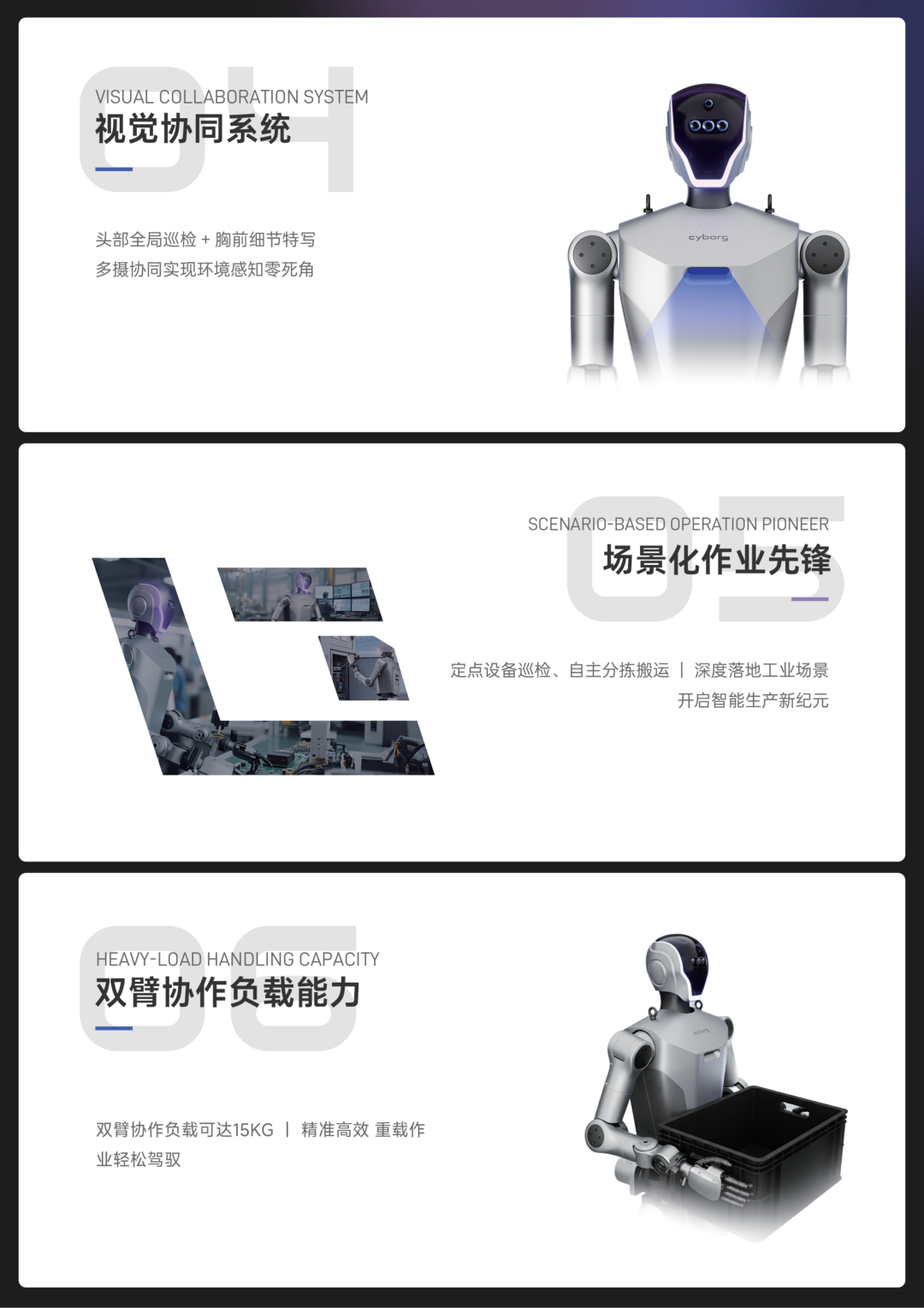 相较于传统足式机器人,Cyborg-W01 在保留人形自然交互优势的基础上,显著扩大了作业范围,提升了现场部署与工作效率。参会企业代表详细了解了该产品在多模态环境感知、高危场景自动化执行等方面的技术创新,对其在工业巡检、末端配送、智慧物流等场景的应用价值给予高度评价。