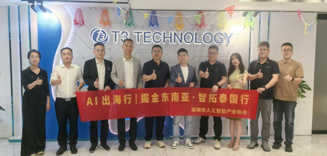 深圳市人工智能产业协会执行会长范丛明、常务秘书长王健、品牌出海部部长李娜,率协会副会长单位深圳华海达科技有限公司运营总监陈坚、会员单位深圳市雪域科技电子有限公司副总裁谭雪芳、深圳市福美投资有限公司董事长程正伟、哈工天愈机器人集团合伙人黄柱东到访T3 TECHNOLOGY总部,受到T3联合创始人兼总裁余小磊、T3深圳总经理王健等团队的热情接待,双方围绕AI产业发展与落地应用开展专题交流。