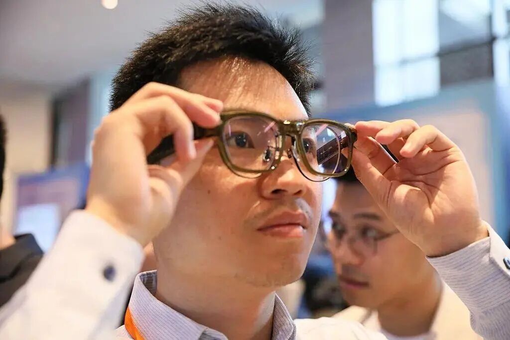 △今年2月,在广东广州,人们在体验AI眼镜功能。