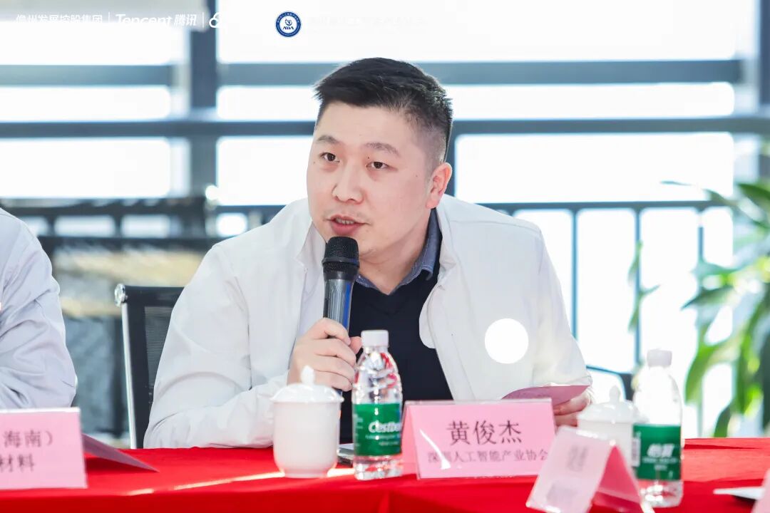 随后,深圳市人工智能产业协会副会长黄俊杰发表致辞。他表示,协会始终致力于推动人工智能技术创新与产业协同发展,通过搭建交流平台、整合产业资源,持续发挥桥梁纽带作用,为企业发展赋能。他强调,本次儋州行旨在构建跨区域产业联动与资源共享机制,依托海南自贸港政策优势,助力企业精准对接发展机遇,拓宽合作空间、实现高质量发展。