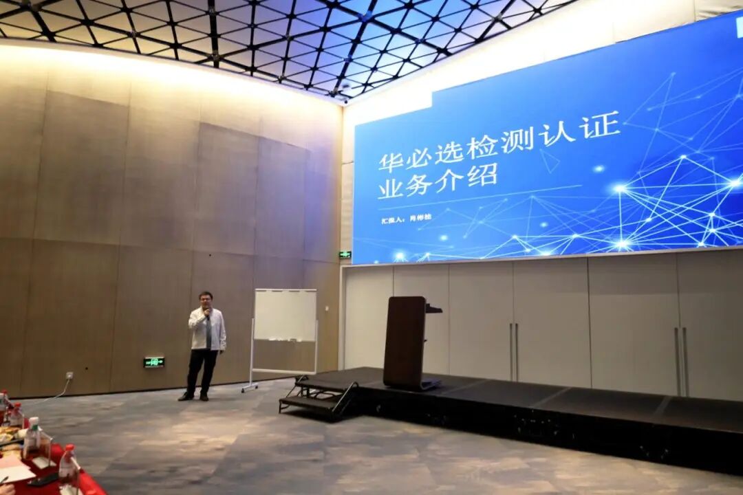 (华必选检测公司副总经理肖彬桂介绍检测认证业务)