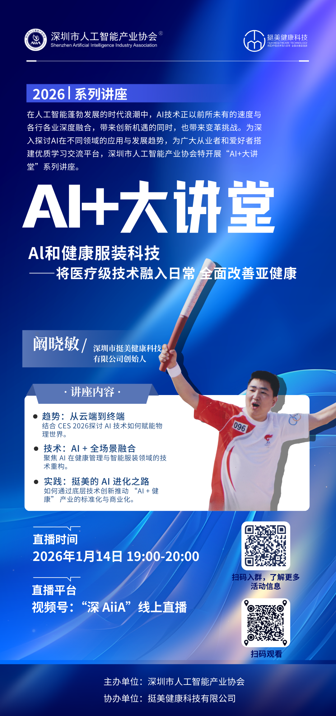 嘉宾简介:阚晓敏Kenneth,深圳市挺美健康科技创始人,深耕创新与品牌领域。拥有清华学士、华南理工 MBA 学位,跨界任教 13 年。曾助力三星电子在中国布局,获多项科技奖项与荣誉,两度担任奥运火炬手,任政协委员及粉红丝带数医融合专委会主任。带领挺美获高新技术企业认证及二类医疗器械资质,推动医疗级技术落地亚健康改善。