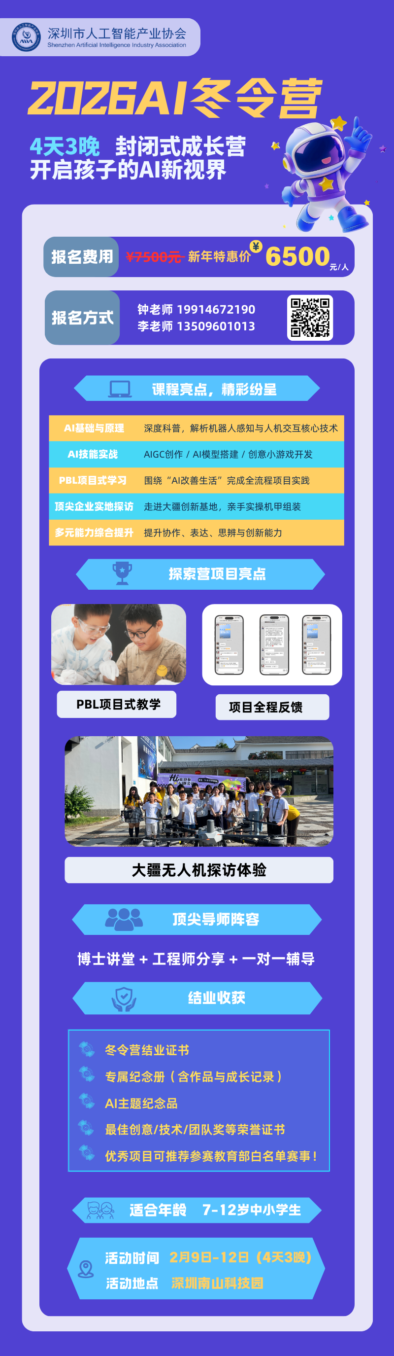 4 天 3 晚 AI 冬令营火热报名中!具身智能博士亲授+大疆基地实地探访+全流程项目实践,让孩子在沉浸式体验中开启 AI 探索之旅!
