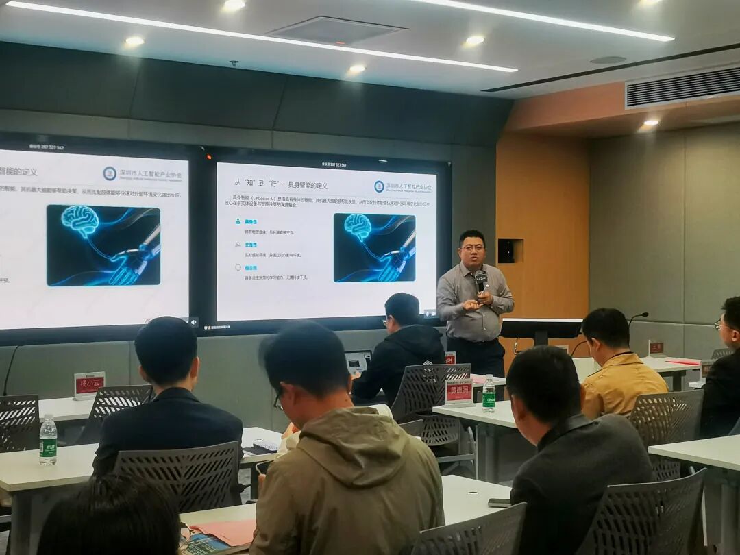 深圳市人工智能产业协会执行会长范丛明在致辞中,同步带来《具身智能产业发展趋势与机遇》主题分享。他指出,具身智能正经历从“知” 到 “行” 的范式革命,2035年中国具身智能市场规模有望突破万亿元,而AI声光作为智慧空间的核心入口技术,将成为具身智能落地的重要载体。协会始终以 “链接产业资源、赋能生态发展” 为使命,本次活动搭建的 “沉浸式考察+精准交流” 平台,正是为了助力会员企业把握技术趋势、对接优质资源。