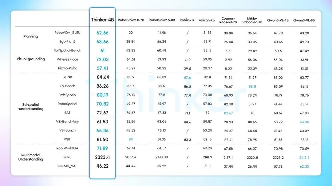 近日,在涵盖10B以下具身智能大脑模型的权威基准评测中,优必选具身智能大模型Thinker一举拿下9项第一。