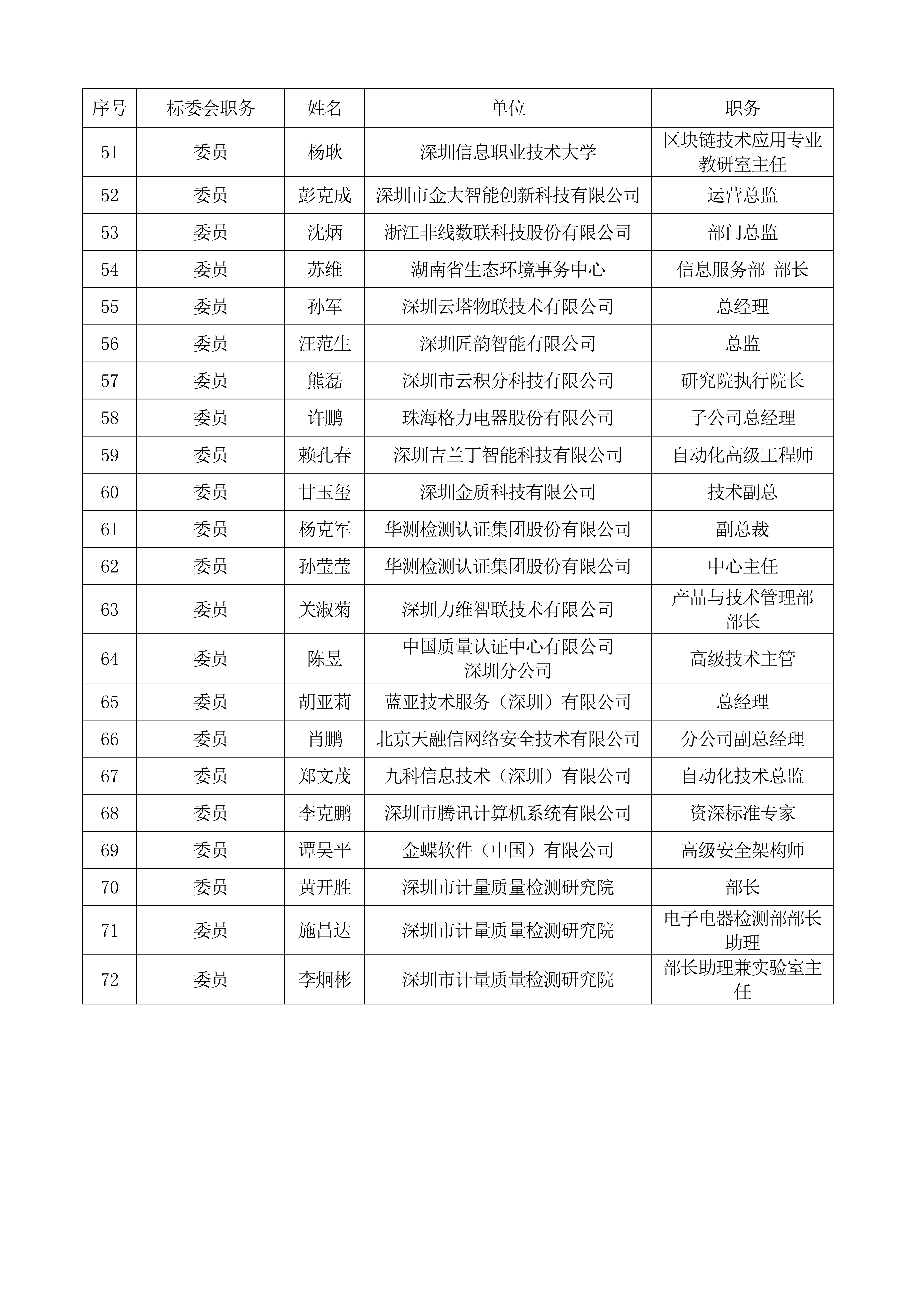 深圳市人工智能产业协会标准化委员会现有委员72名,为保障委员组成的公开透明,接受社会各界监督,现将该委员会委员名单予以公示。