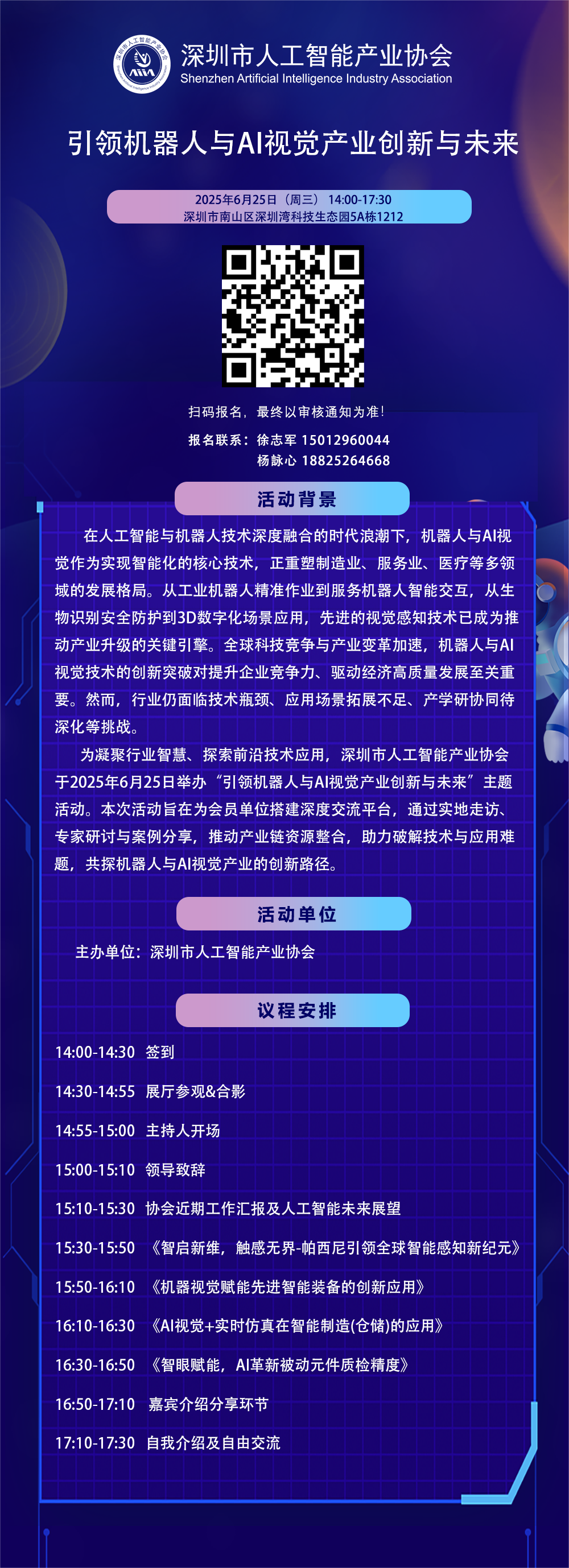 【活动报名】6月25日 | 诚邀您参加“引领机器人与AI视觉产业创新与未来”活动