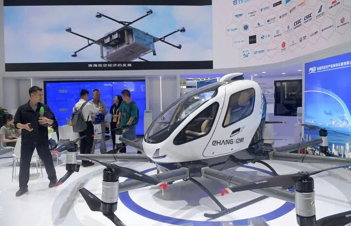 这是在珠海航展上展示的亿航智能EH216-S无人驾驶载人航空器(2024年11月13日摄)。新华社记者 卢汉欣 摄