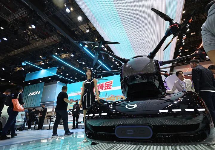 这是在第二十一届上海国际汽车工业展览会上拍摄的广汽传祺品牌展出的一款飞行汽车(2025年4月25日摄)。新华社记者 方喆 摄