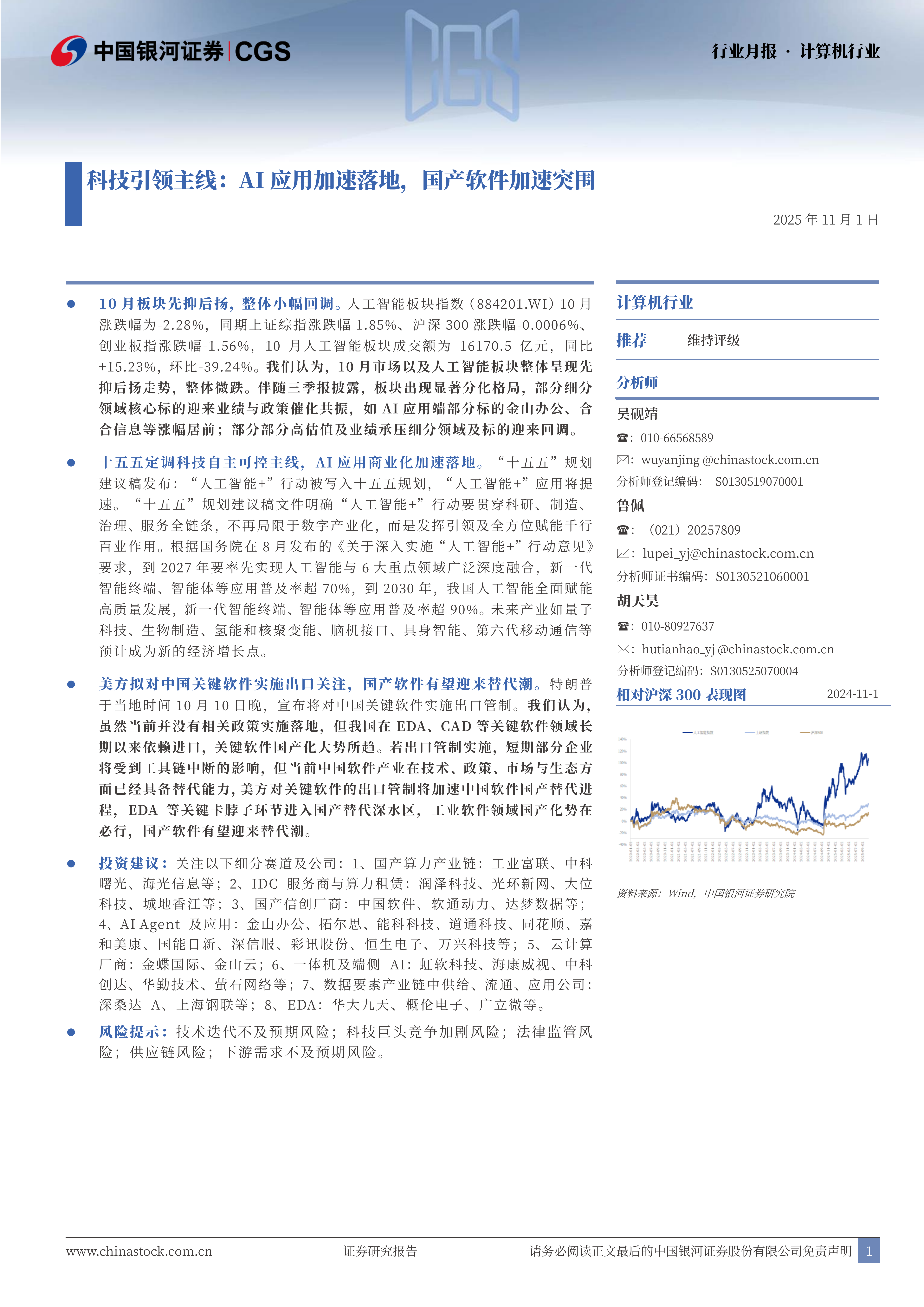 【产业资讯】银河计算机行业月报_10月人工智能月报_科技引领主线:AI应用加速落地,国产软件加速突围