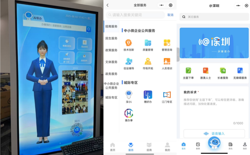 深圳推出“人工智能+政务服务”20条举措,到2027年将实现政务服务全周期、重点场景智能化服务覆盖率100%,政务服务大模型应用统一纳管率100%。完善人工智能治理,“深小i”智能客服成为市民办事的“贴身助手”,通过多模态服务,实现“一次过、少填报”。
