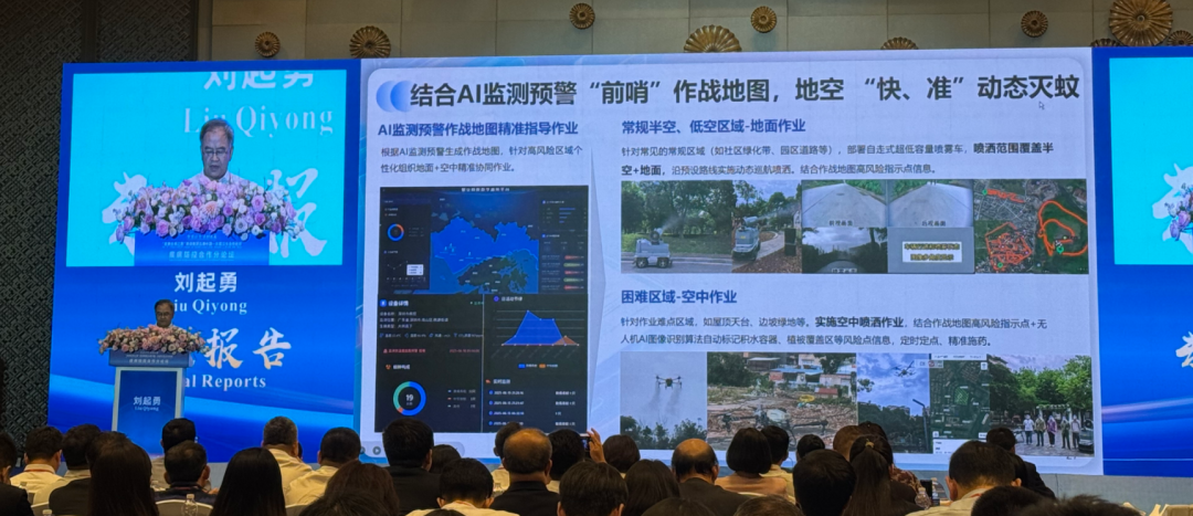 会上,银河星尘病媒科学家、中国疾控中心病媒生物首席专家刘起勇教授以《蚊媒传染病智能监测预警与 “地空一体” 控制模式》为题演讲,向国内外展示“AI 监测预警 + 地空一体”蚊媒精准防控的「中国模式」,引发热议。