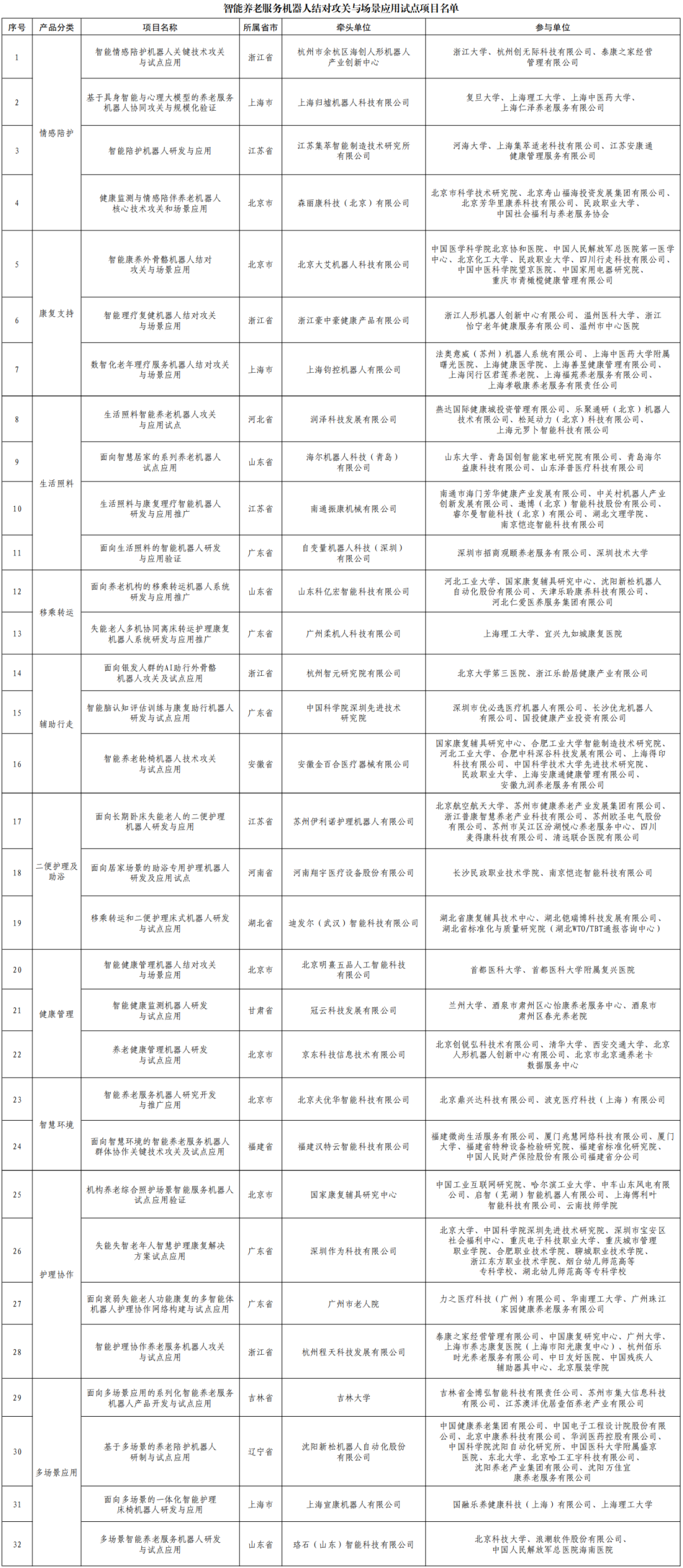 【产业要闻】智能养老服务机器人结对攻关与场景应用试点项目名单公布32个项目入围