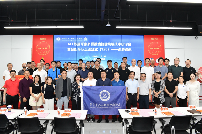 2024年11月16日,由深圳市人工智能产业协会主办的“AI+数据采集多模融合智能终端技术研讨会暨会长带队走进企业——遨游通讯”活动在深圳市龙华区福城街道社区鸿创科技中心2栋二单元6楼遨游通讯举行。本次活动旨在深入探讨AI+数据采集、多模融合以及智能终端技术的最新进展、应用场景及未来趋势,进一步推动人工智能技术在产业中的深入应用。