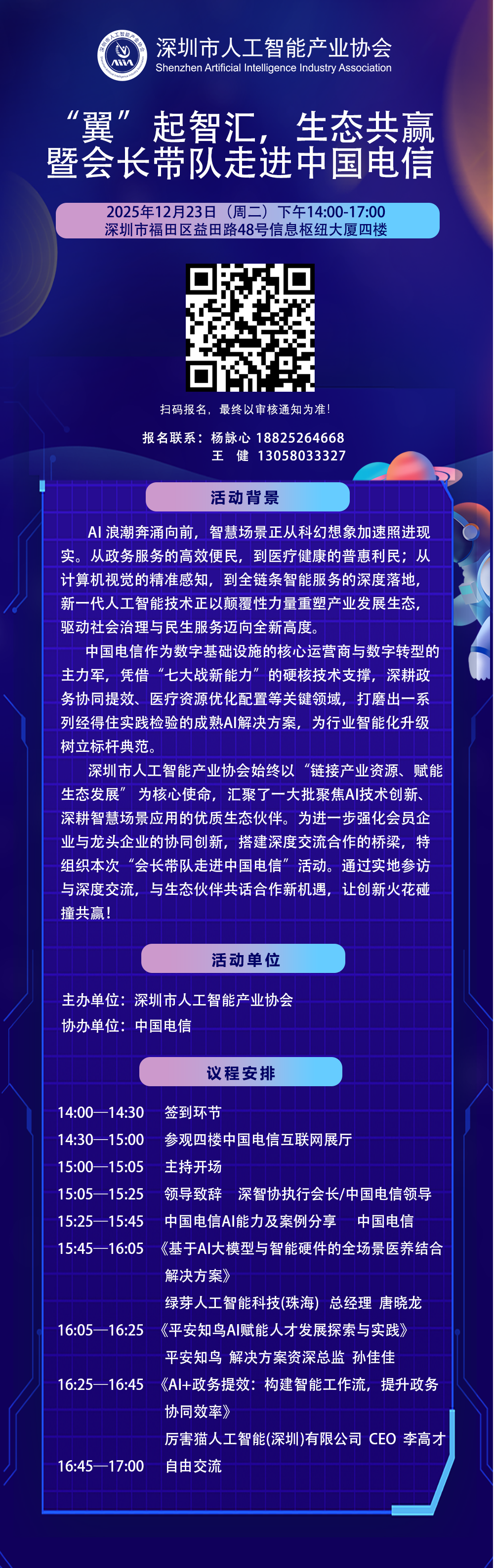 【活动预告】“翼”起智汇,生态共赢——暨会长带队走进中国电信