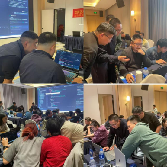 尽管课程安排在周末,大家仍克服通勤不便,早早从龙岗区各街道赶来;不少人提前抵达、主动预习,展现出高度的学习自觉。课堂氛围专注而活跃——理论讲解时凝神聆听,实操演练时围绕项目开发、工具应用与问题调试热烈讨论、协作攻关,俨然一个充满活力的AI技术工坊。