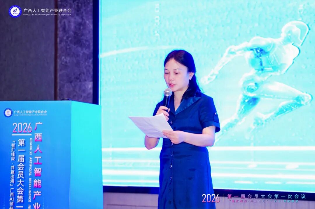 广西壮族自治区民政厅政策法规处(行政审批办公室)处长、一级调研员何霞萍作开场致辞。她对广西人工智能产业联合会的筹备工作给予充分肯定,并提出四点希望:一是坚持党建引领,把牢正确方向;二是严守章程规矩,规范内部治理;三是聚焦主责主业,服务产业发展;四是强化开放协同,助力合作共赢。勉励联合会有效聚合多方优势资源、搭建协同创新平台,助力广西人工智能产业立足本土、深耕全区、面向全国、辐射东盟,实现高质量发展与开放合作共赢。