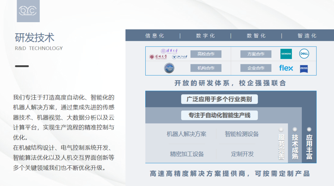 深圳博创机器人技术有限公司是一家专注于研发、生产和销售自动化工业机器人的高新技术企业。拥有自主研发团队,擅长技术创新和产品研发。公司总部位于中国广东省深圳市,始终致力于为客户提供高效、智能的自动化解决方案,助力客户提升生产效率,降低成本,实现产业升级。