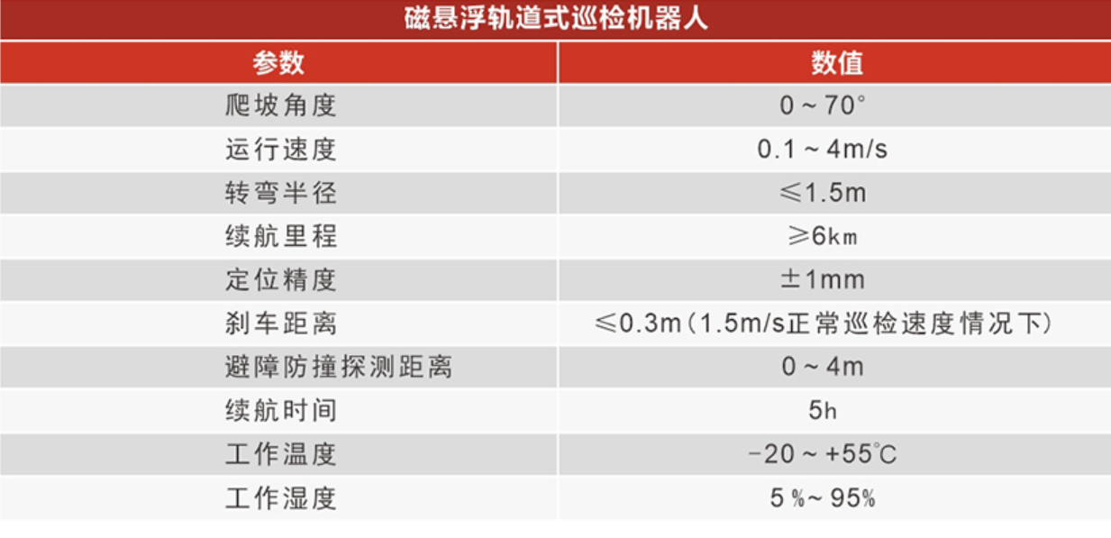 效率高:磁悬浮直驱技术,无打滑现象速度可达传统轨道式巡检机器人的5-10倍;