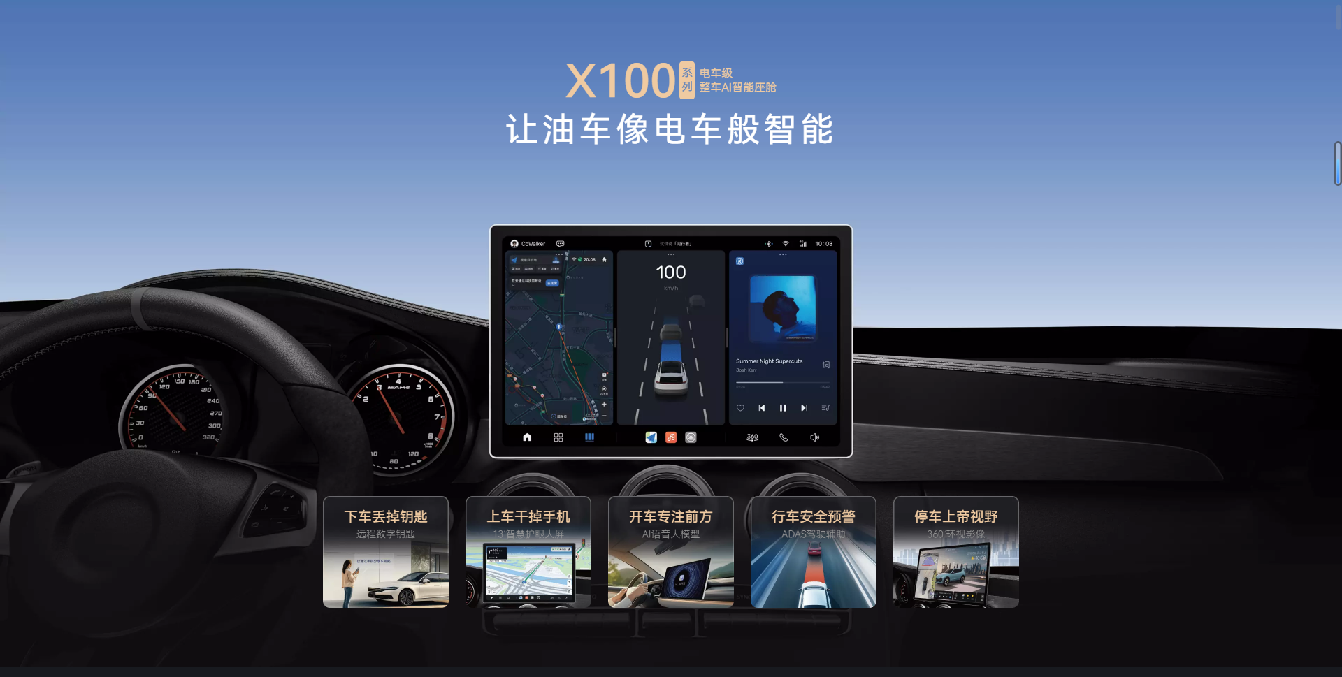 羡慕新能源车的智能座舱,却舍不得换燃油车?同行者 X100 系列电车级整车 AI 智能座舱重磅来袭,以顶尖技术打造全维度智能方案,让燃油车拥有媲美新势力电车的智能体验,解锁好看、好用、好玩、安全、智能、进化六大出行新境界!