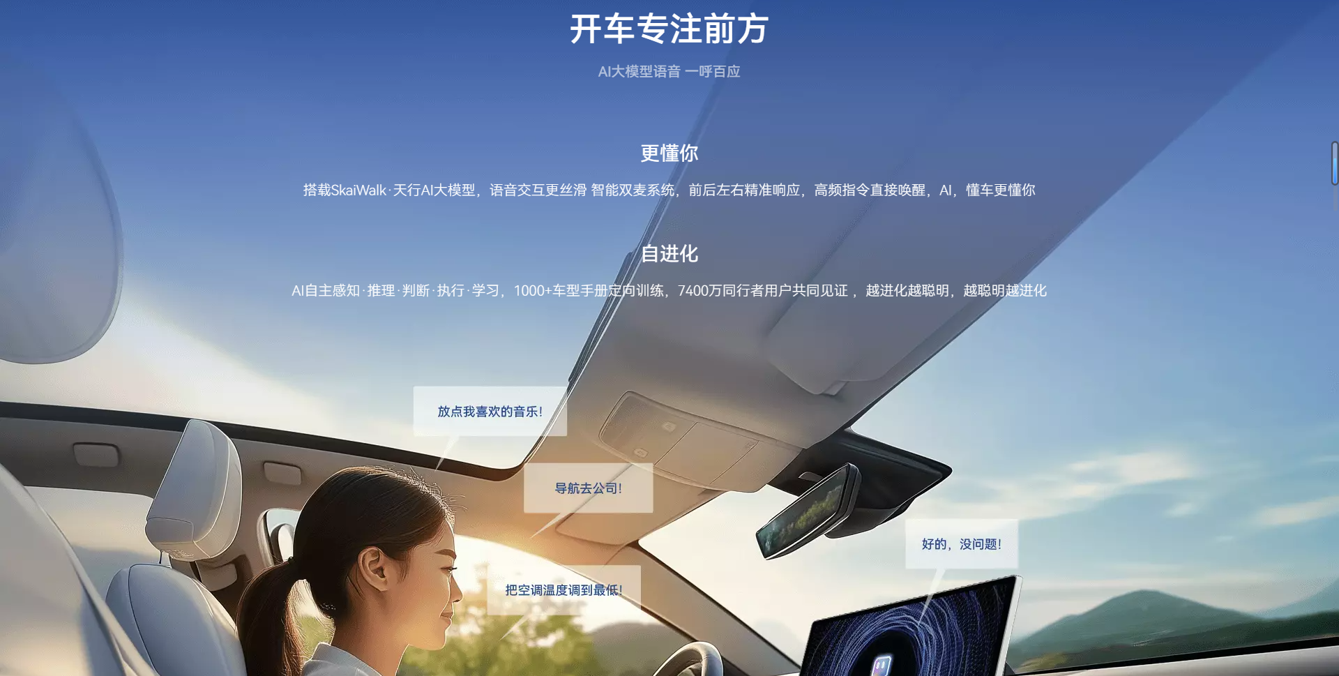 更有SkaiWalk™1.2 天行 AI 自研大模型,经 1000 + 车型手册定向训练,7400 万用户见证,能感知、会推理、可学习,查车知识、陪聊、做图等全能实现,堪比专属 AI 秘书。